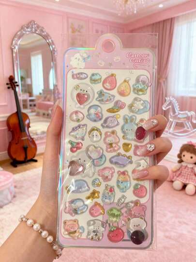 3Dかわいい動物のご褒美ステッカー - エレガントでフレッシュなデザインスマホケースノートクラフト楽しいステッカー日記の拡張ページ3D型押しステッカー落書きステッカーに最適