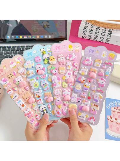 1個 かわいい動物ステッカー漫画調デコラティブステッカースポンジとPVC素材スケートボード荷物文房具ノートパソコン冷蔵庫携帯ケースなどの装飾に適していますキャンディステッカーステッ