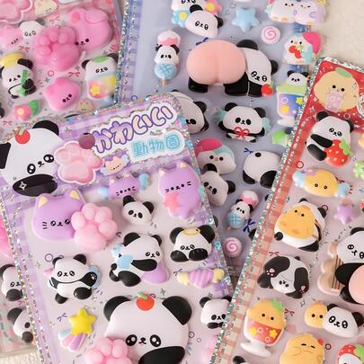 1個 3Dかわいいパンダステッカー漫画的な装飾ステッカー4種類から選べますステッカーブックノートパソコン冷蔵庫に使えるほかDIYスマホケースの装飾にもホームデコレーションに最適で誕生日