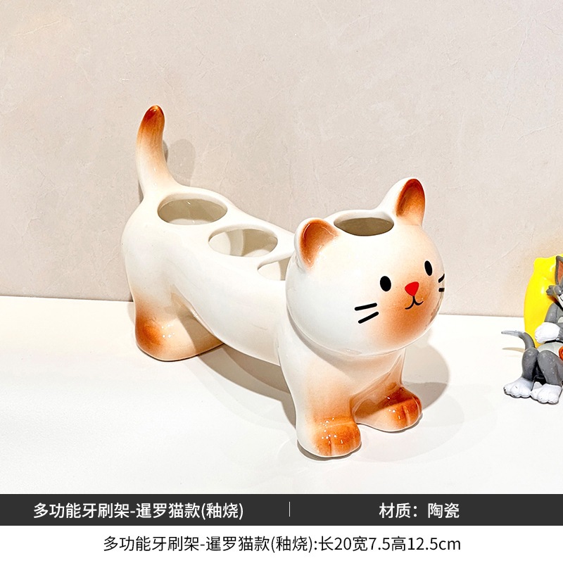 和風 置物 収納 母の日プレゼント シャム猫セラミック歯磨き粉歯ブラシスタンド収納ラック 新生活 贈り物 実用的な家庭用歯磨き粉置き場 シンク台用セラミック