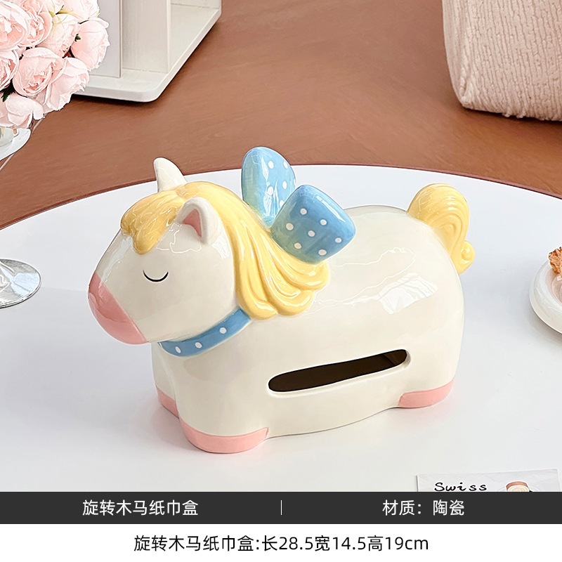 贈り物 新生活 母の日プレゼント 和風 置物 収納 回転木馬セラミック製家庭用ティッシュボックスリビングルームダイニングテーブルオフィスコーヒーテーブル用高級ティッシュボックス