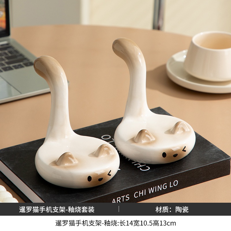 贈り物 新生活 母の日プレゼント 和風 置物 収納 シャム猫の漫画デザインの携帯電話スタンド家庭用卓上・床置き両用ユニバーサル携帯電話スタンド