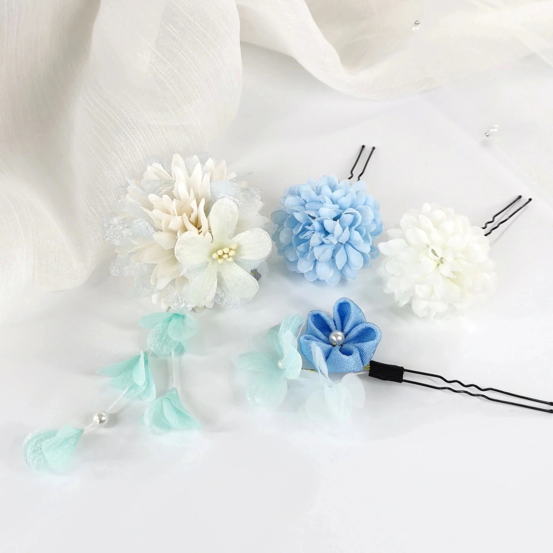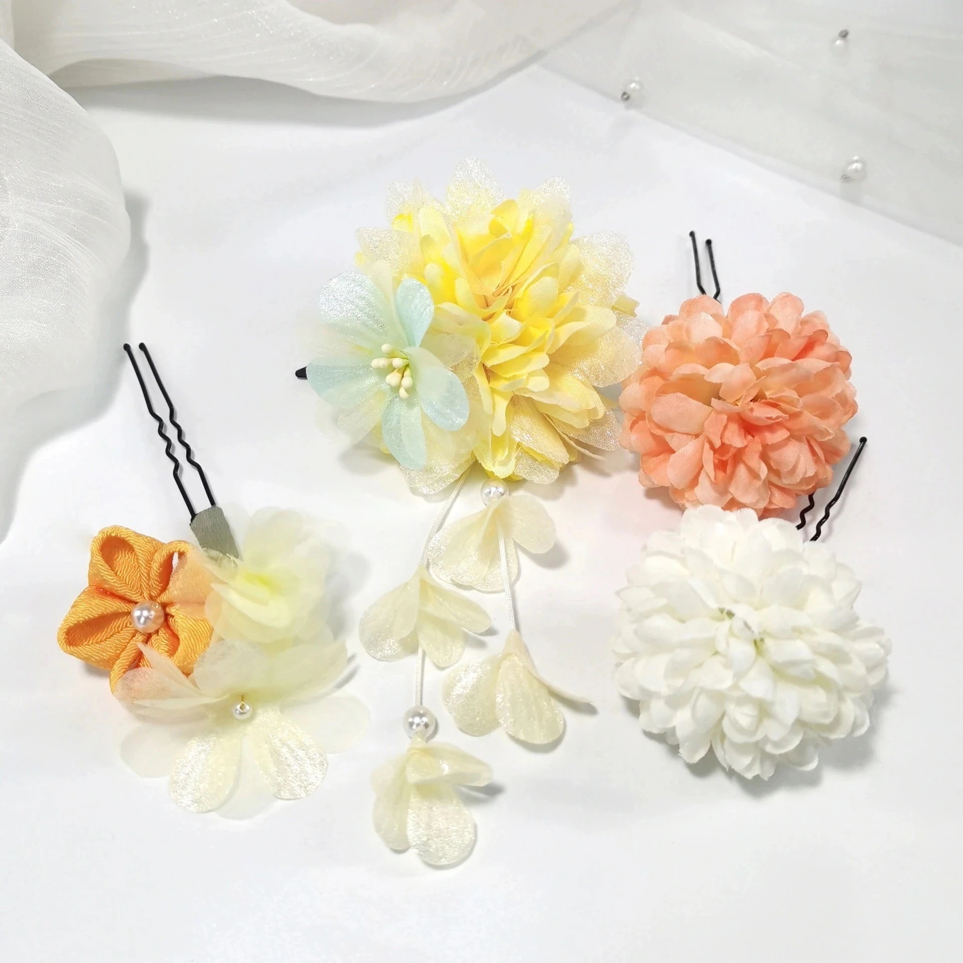 ヘアアクセサリー 和風キャンディーカラー 象布 シルクフラワーセット 簪 子供 祭り 着物 浴衣 和風 かわいい 鞠菊 ヘアアクセサリー