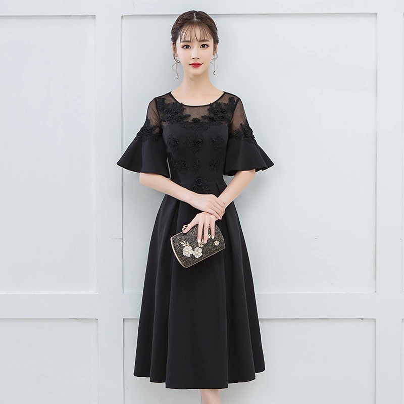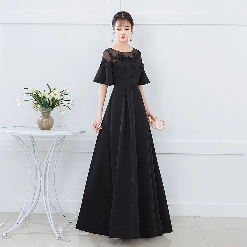 ブラックイブニングドレス 2025年新作 春 宴会 パーティー 上品 ロング丈 スリム効果 ワンピース