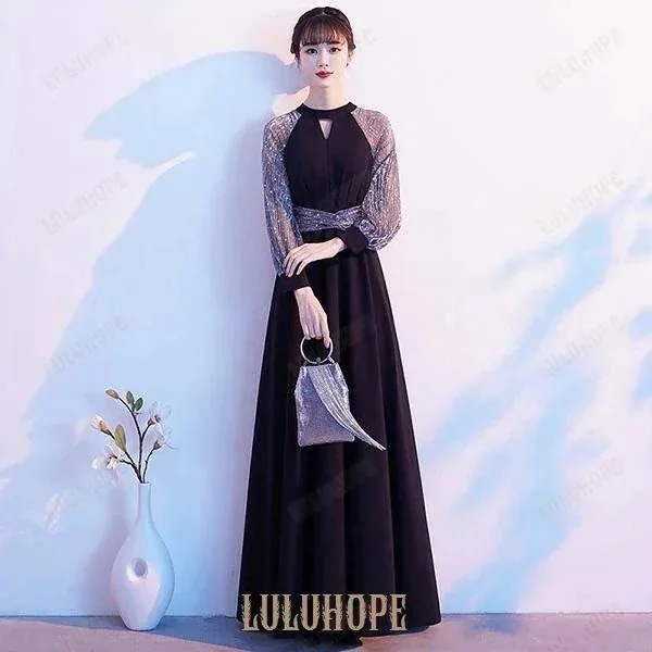 ドレス 大人 ピアノ 発表会 ロングドレス 結婚式 母親 ピアノ発表会 黒ドレス 袖付き キラキラ ワンピース 長袖 演奏会ドレス 演奏会用ドレス パーティードレス