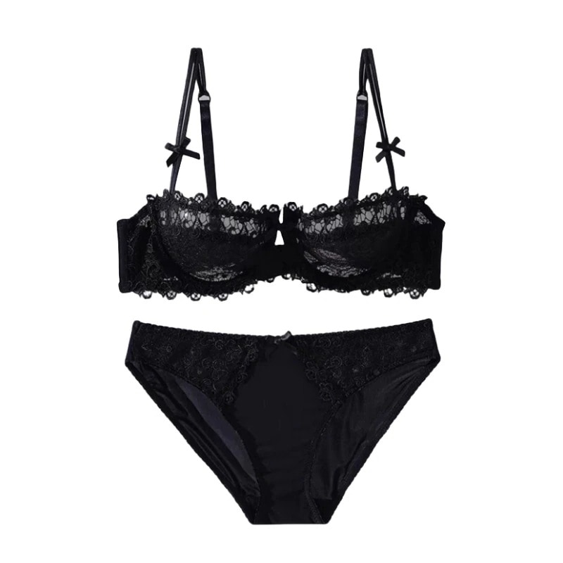 可愛いセット下着 欧米 セクシー ブラジャー セット内容 薄 半透明 レース ピュアデザイア 小さい胸 ギャザー たるみ防止 スチールリング 大きいサイズのブラ