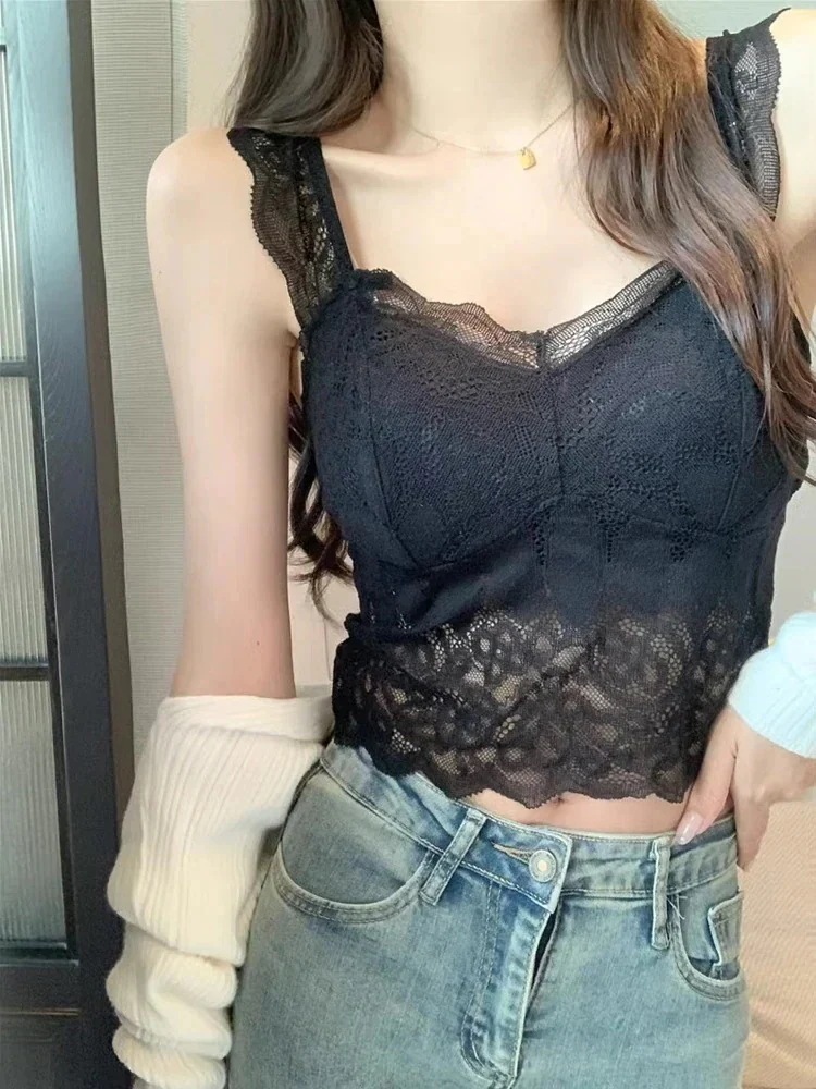 胸パッド付きレースカップ付きインナーの外着美背中ノースリーブショート丈トップスのインナーにギャルシック カップ付きインナー