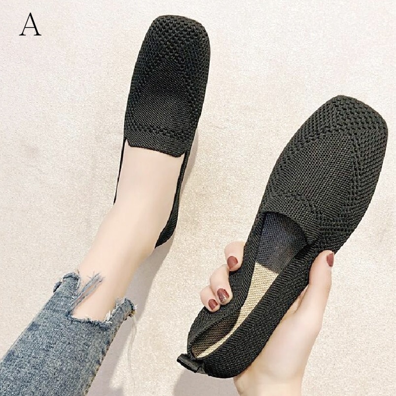 在庫一掃セール!】定番ニットフラットシューズ レディース 通気性よい 履きやすい 走れる 長時間 通勤 仕事 可愛いサンダル 靴 シューズ パンプス 歩きやすい 痛くない 疲れない 走れる