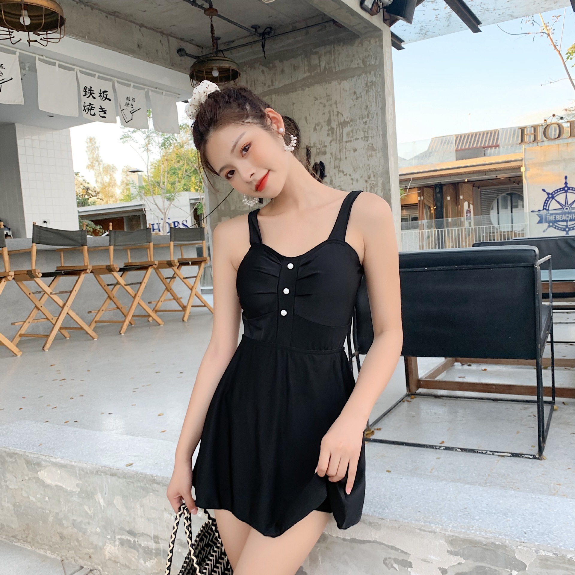 泳衣女韩国ins风甜美少女小清新遮肚显瘦温泉保守吊带性感游泳装