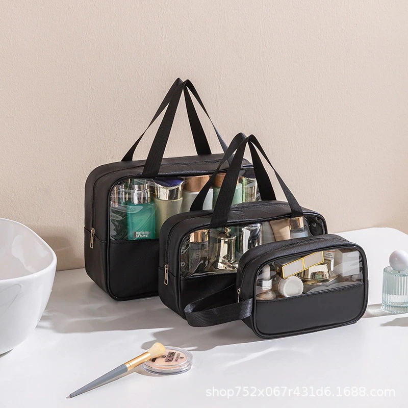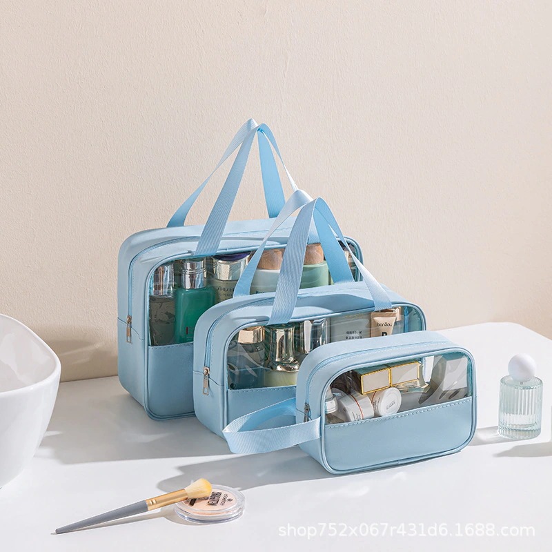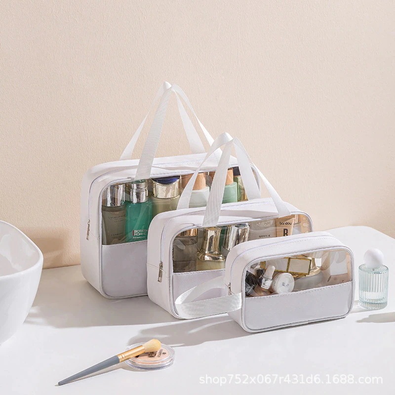 ポーチ コスメ パッチワーク 透明 シンプル ハンドル付き 化粧ポーチ 携帯用 防水 大容量 PVC 洗面用ポーチ 収納 3点セット 化粧ポーチ 大容量