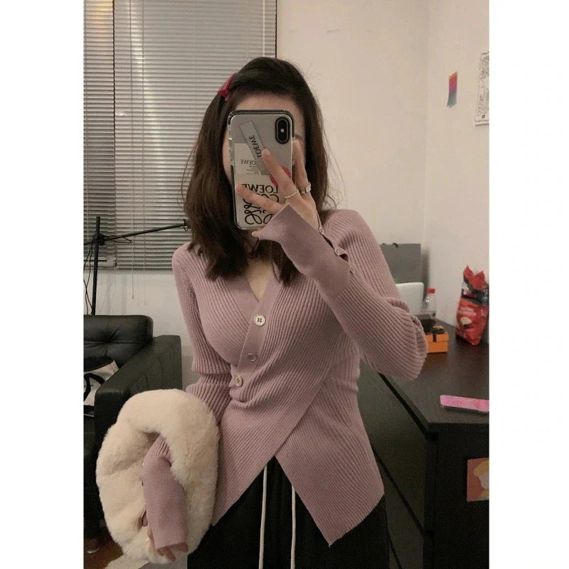 新入荷続々 セーター スリムVネックジャンパークロス 秋新作スリムオープンスリーブプルオーバーレディースニット長袖インナートップス 人気上昇中