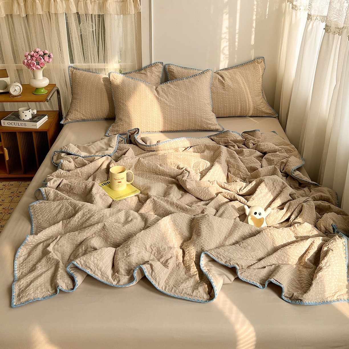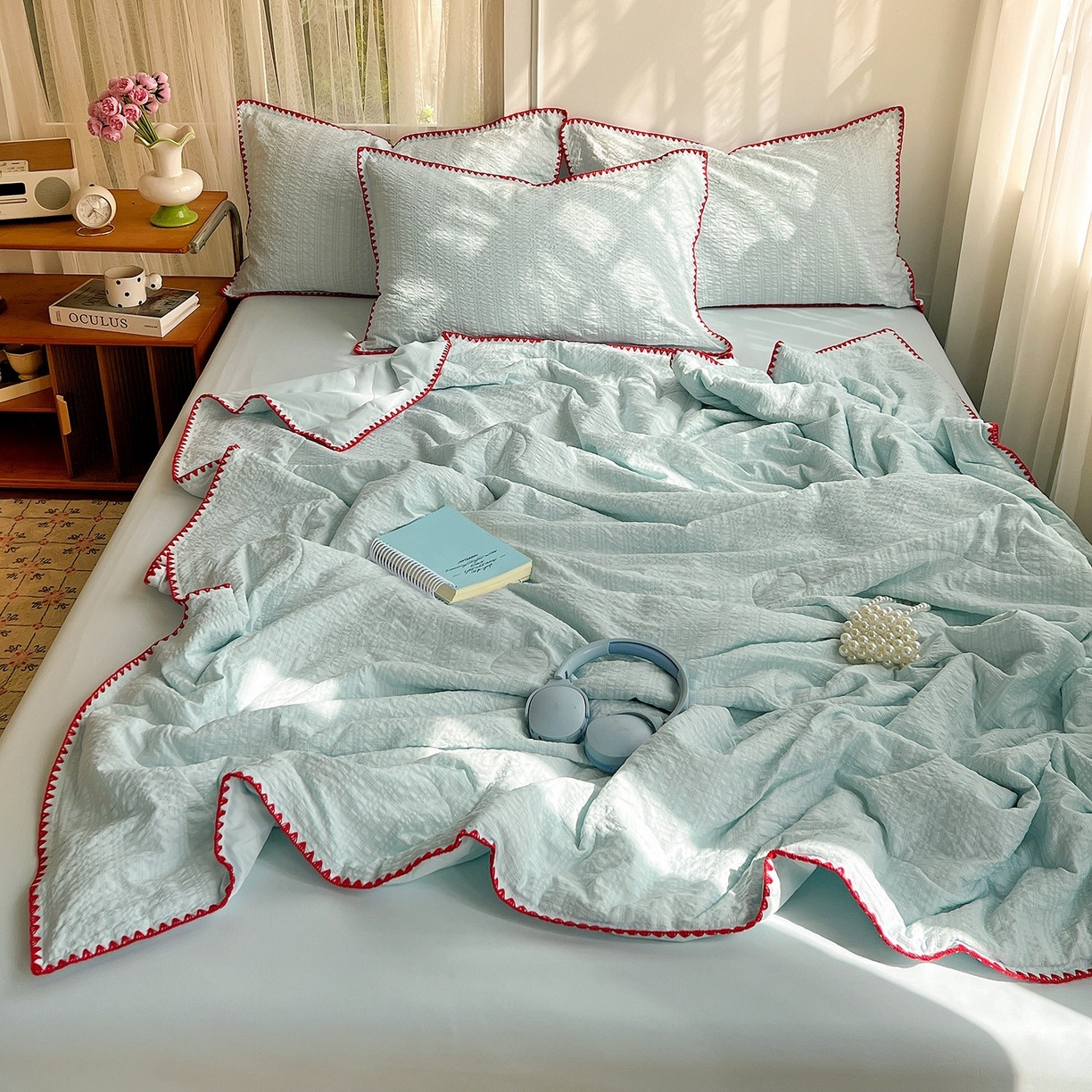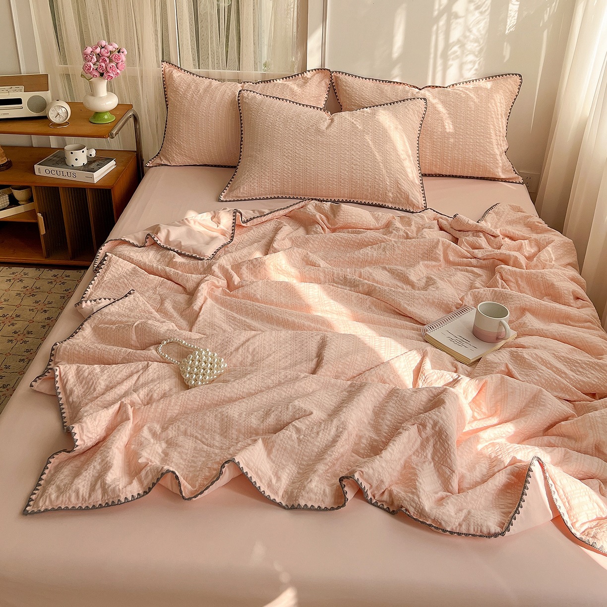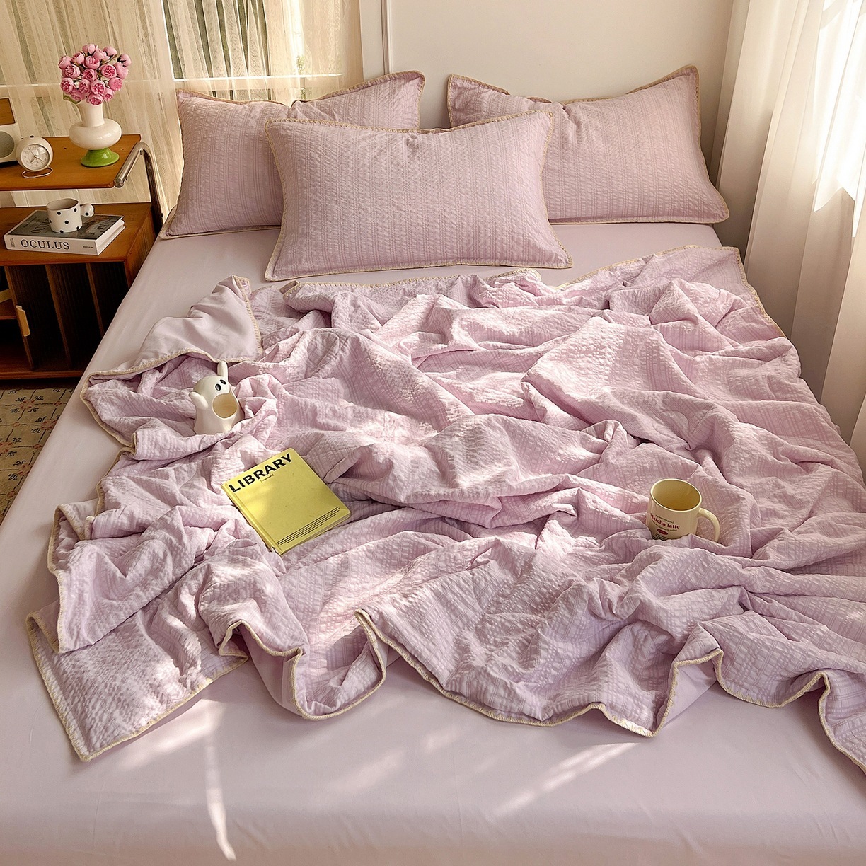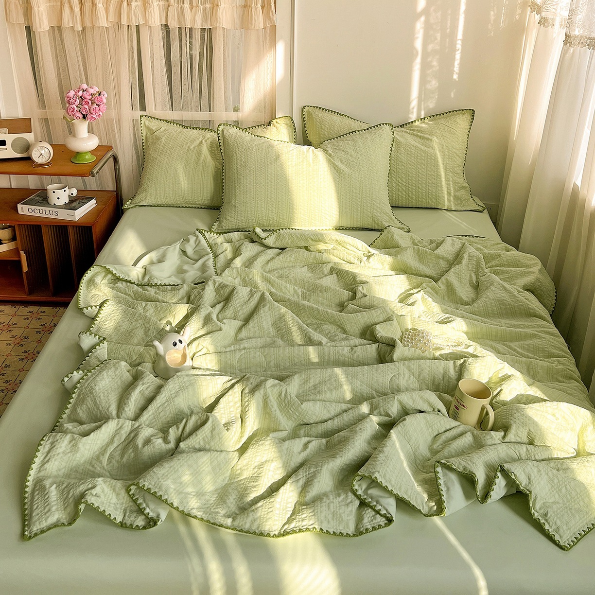 aクラス ベビー&ママ向け 泡芙(パフ)紗 三角ステッチ 涼しい掛け布団 4点セット 純綿布団 エアコン用 しぼしぼ紗 エアコン用布団