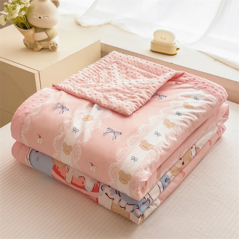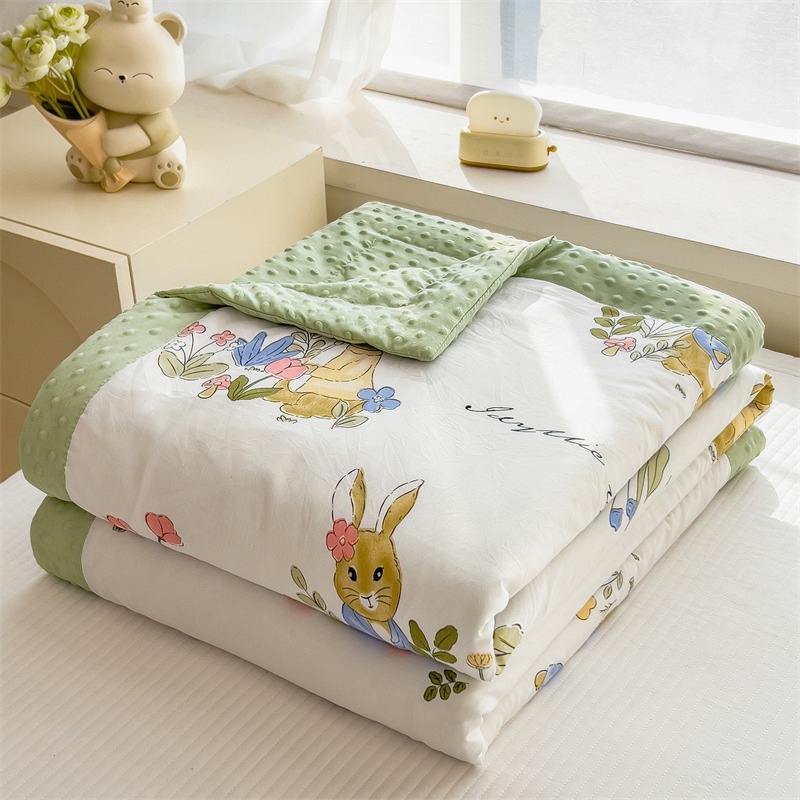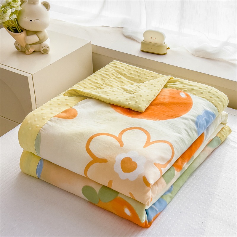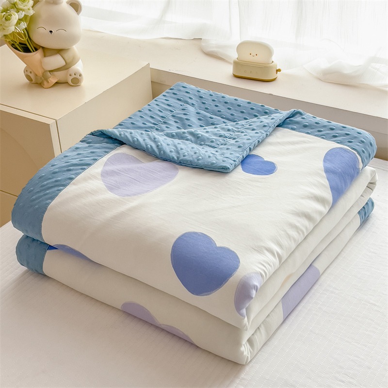 小清新 洗い加工コットン 水玉エンボス プリント布団 涼しい掛け布団 エアコン用 洗濯機可 子供用 洗濯機可 シングル