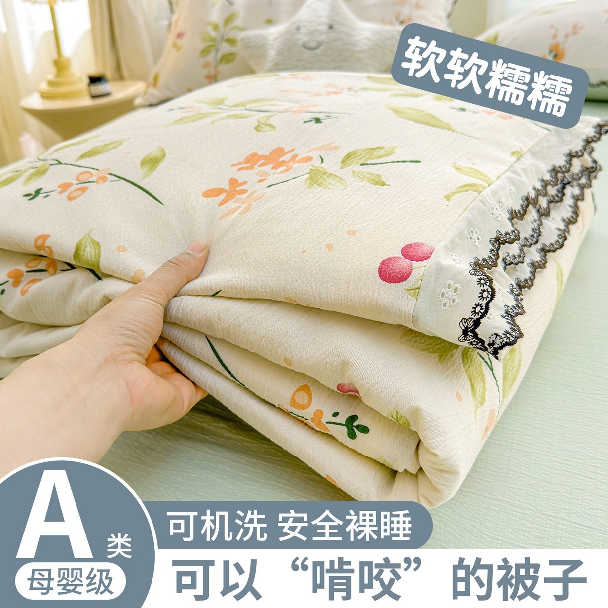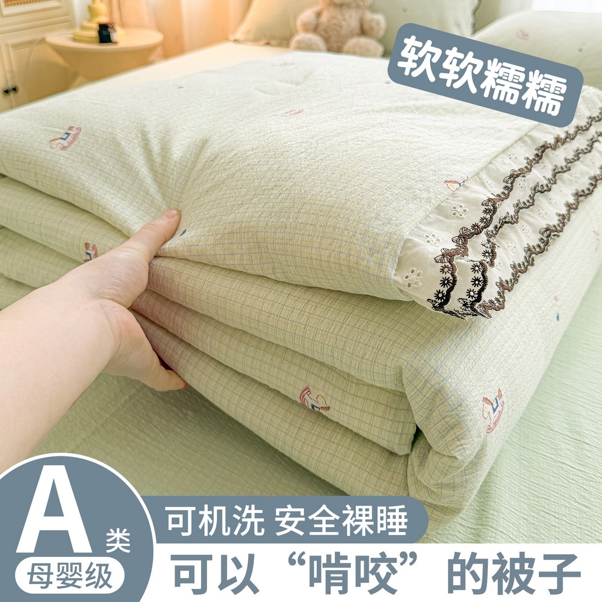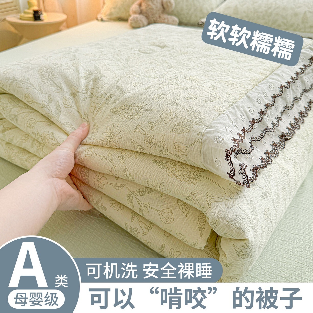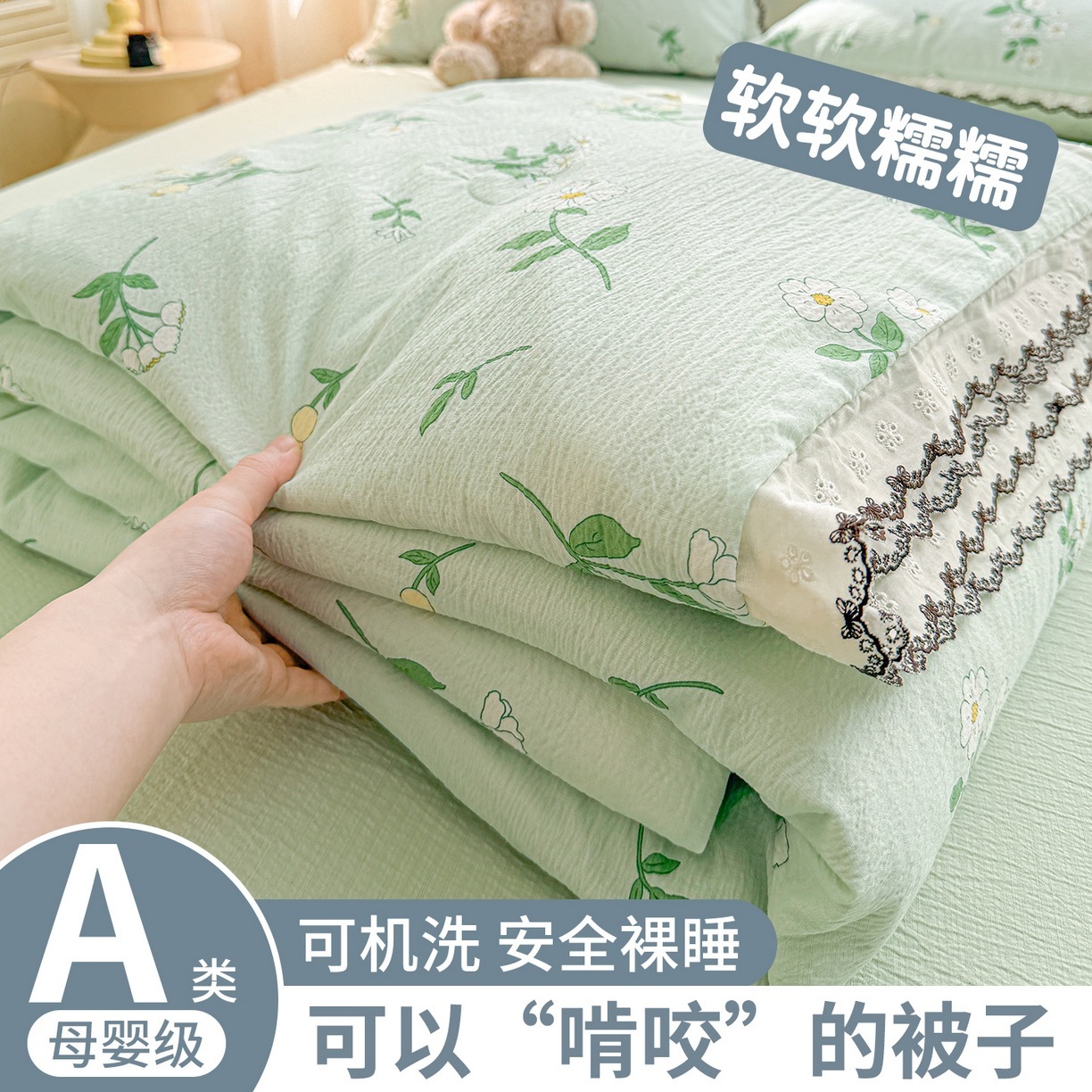 Aクラス 総綿 レース縁 雲肌 二重紗 大豆繊維布団 4点セット 涼しい掛け布団 エアコン用 子供用