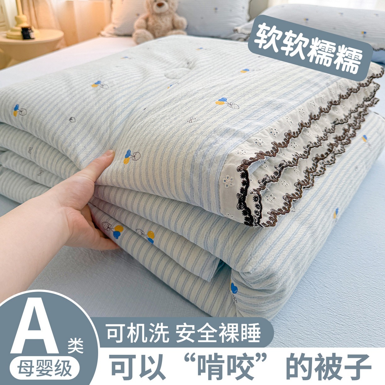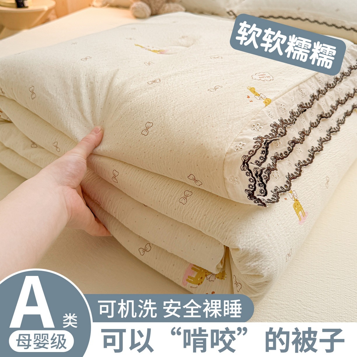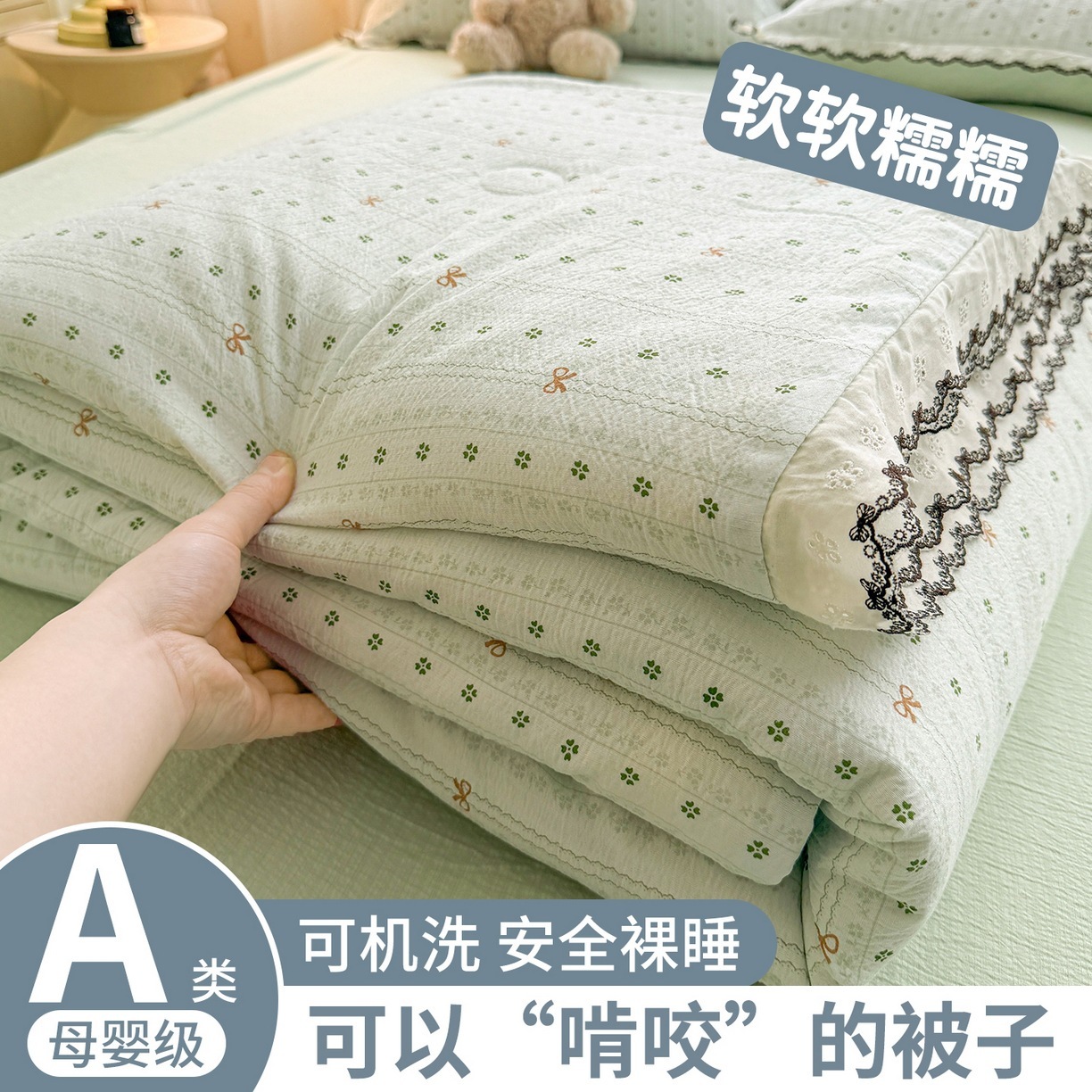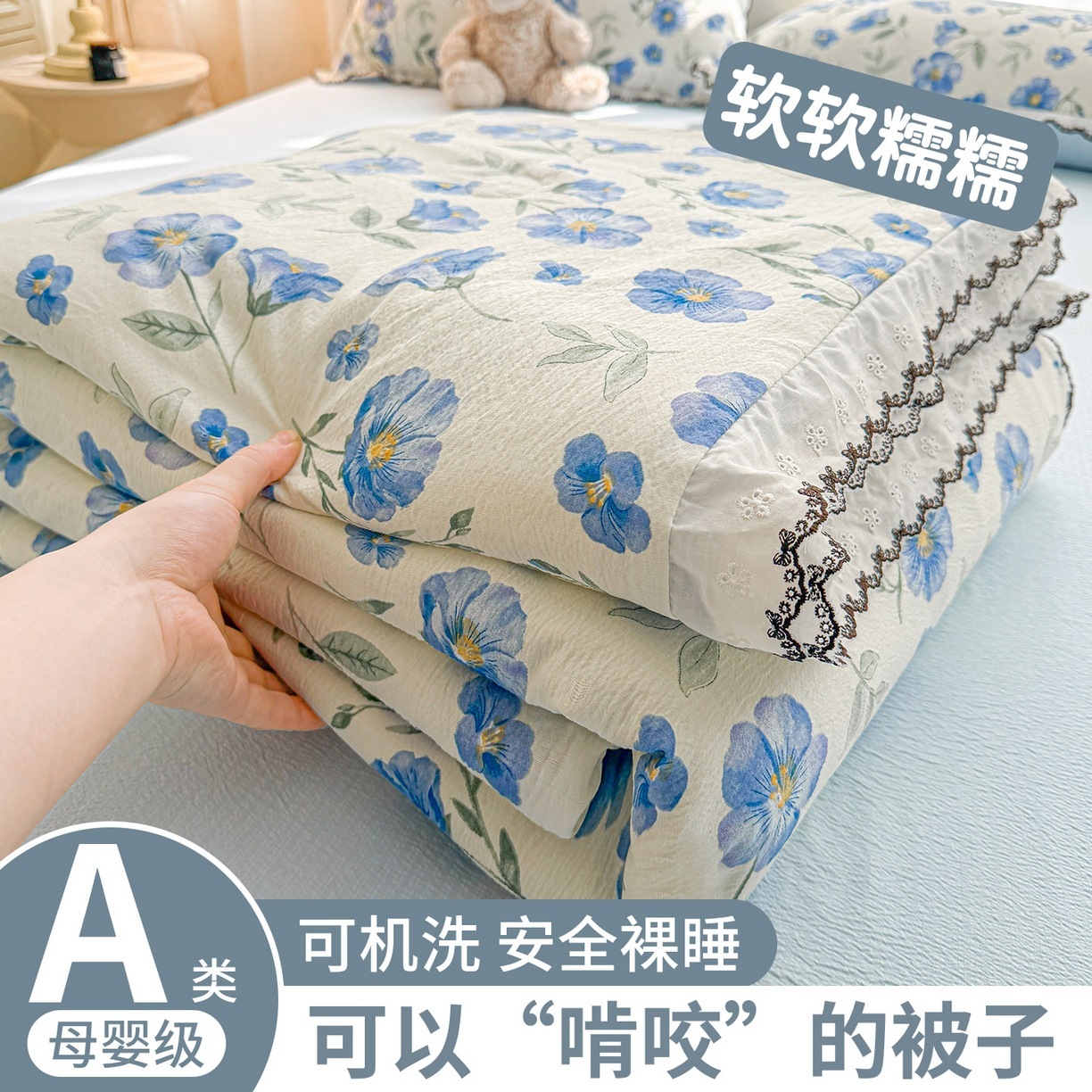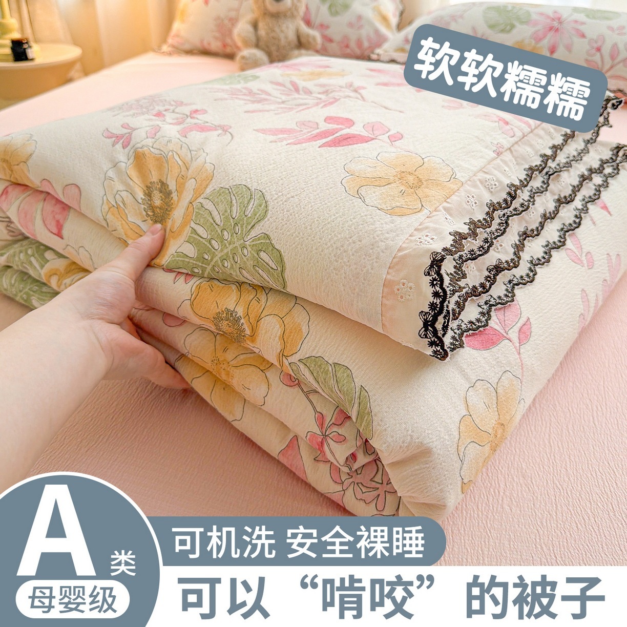 Aクラス 総綿 レース縁 雲肌 二重紗 大豆繊維布団 4点セット 涼しい掛け布団 エアコン用 子供用