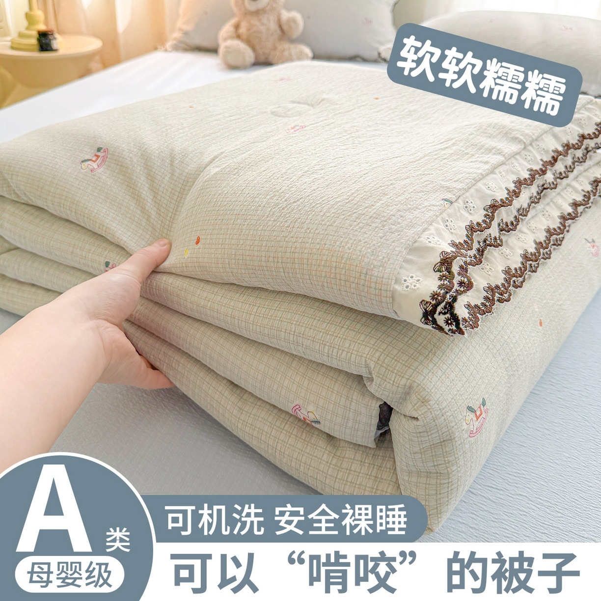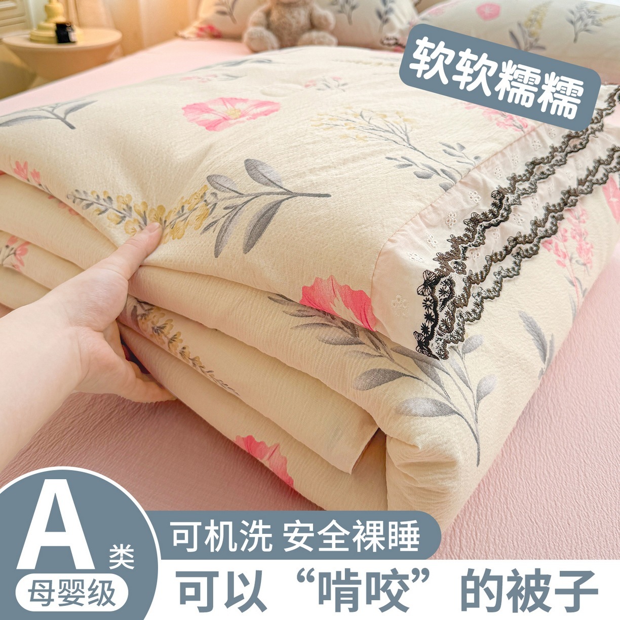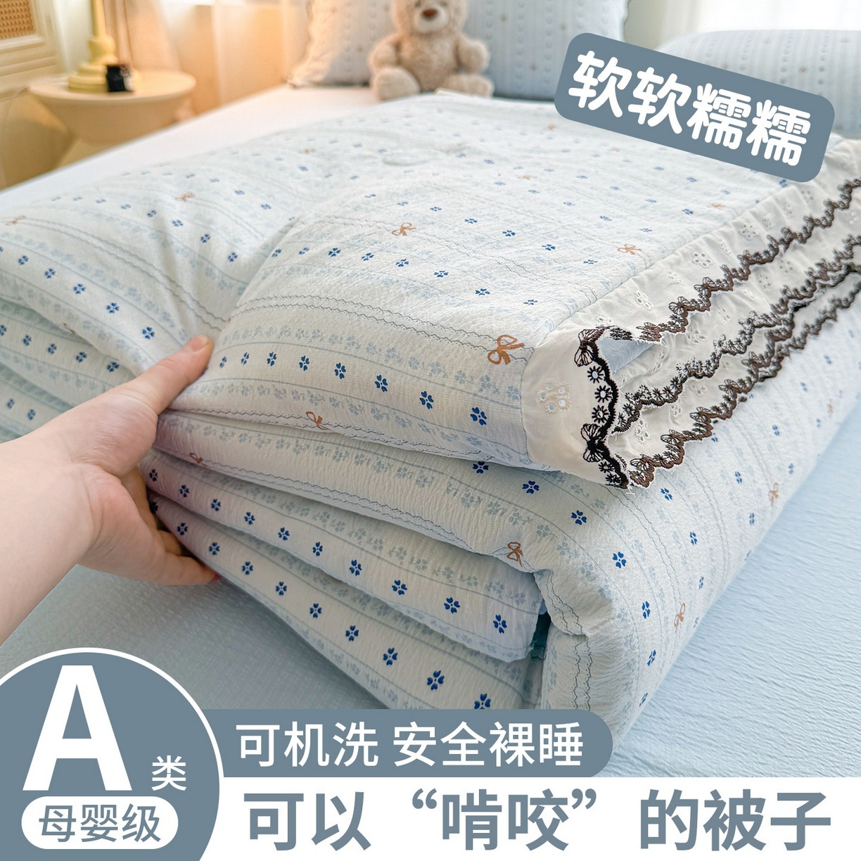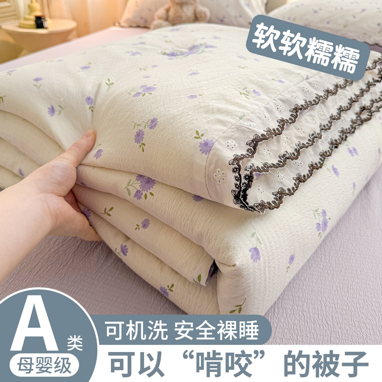 Aクラス 総綿 レース縁 雲肌 二重紗 大豆繊維布団 4点セット 涼しい掛け布団 エアコン用 子供用