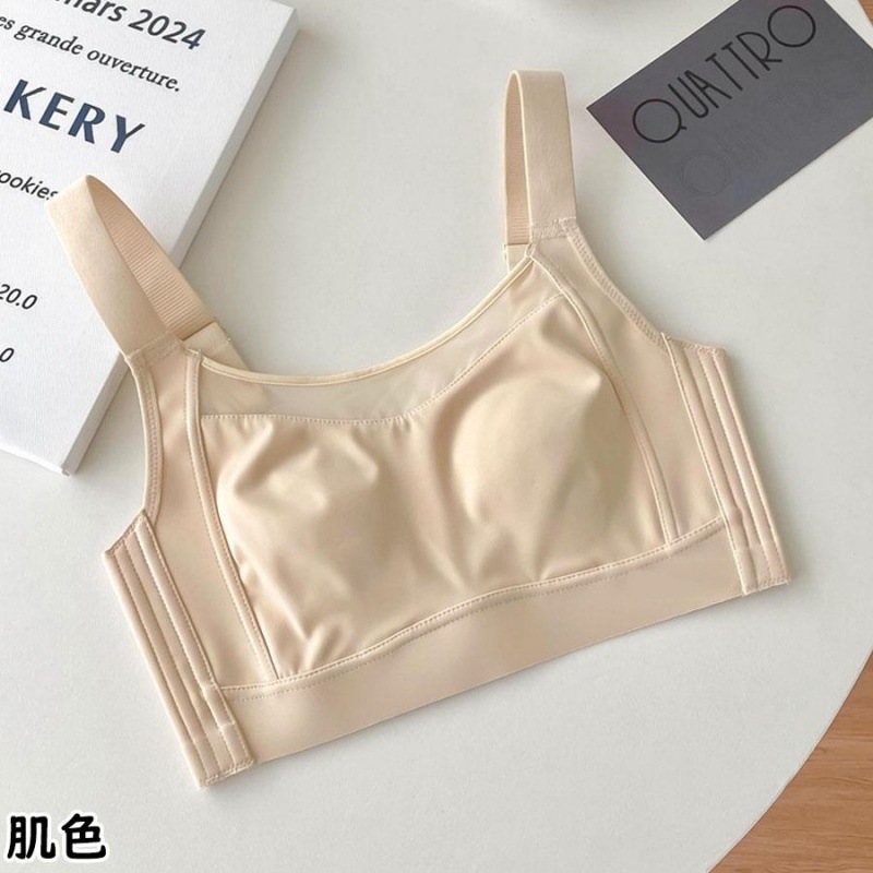 Miss Show【2枚セット】 胸が小さく見せるブラ ノンワイヤー ブラジャー ナイトブラ 昼夜兼用 大きいサイズ 三重安定感・見痩せ・ホールド感 ノンワイヤーブラ スポーツブラ 小さく見えるブラ