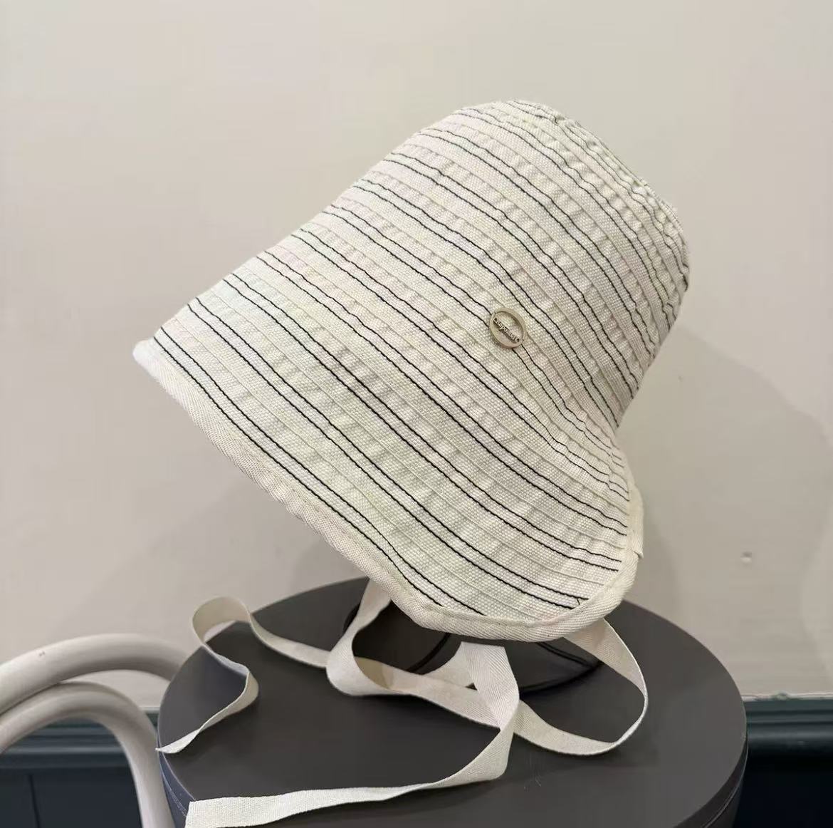 遮光 日焼け止め 帽子 ストライプ バケットハット リボン 水桶帽 フルフェイス 日焼け止め 帽子 レディース 大きい 頭囲 大きいつば 遮光帽