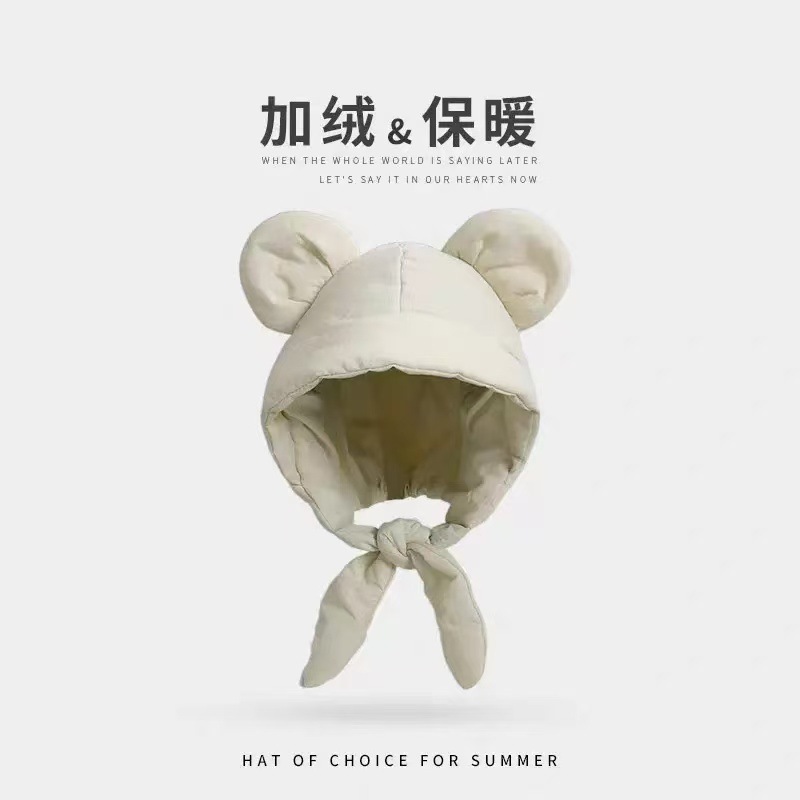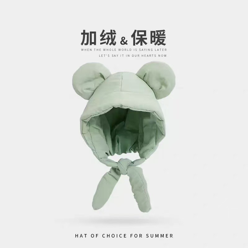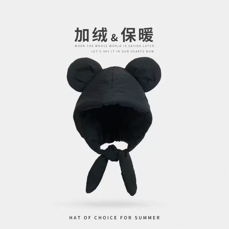 ミッキー 頭 耳 ダウン 綿 帽子 レディース 軽量 保温 防寒 耳保護 リボン サイクリング 頭 包み 帽子