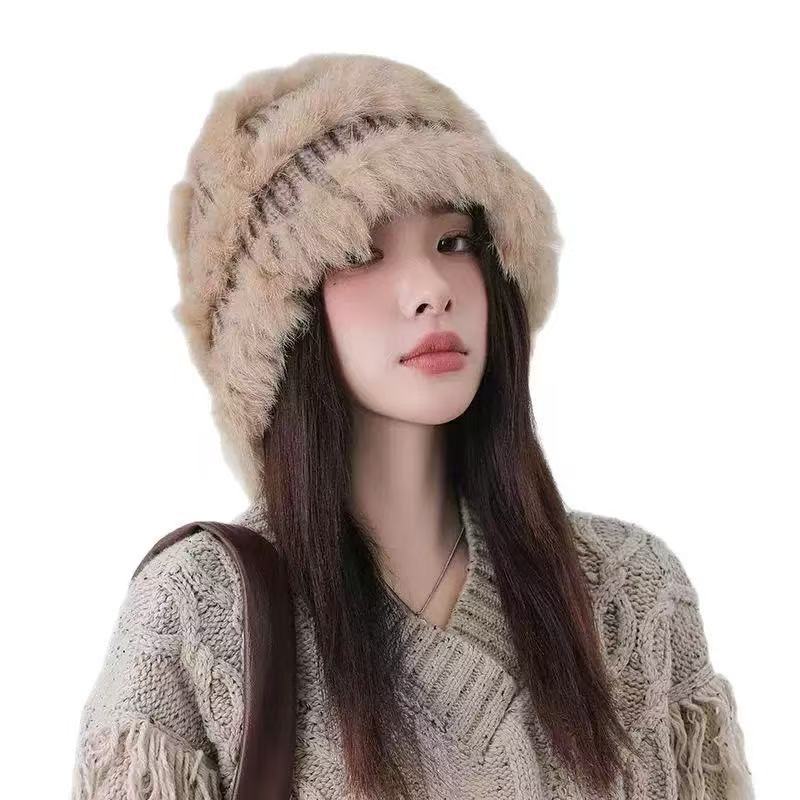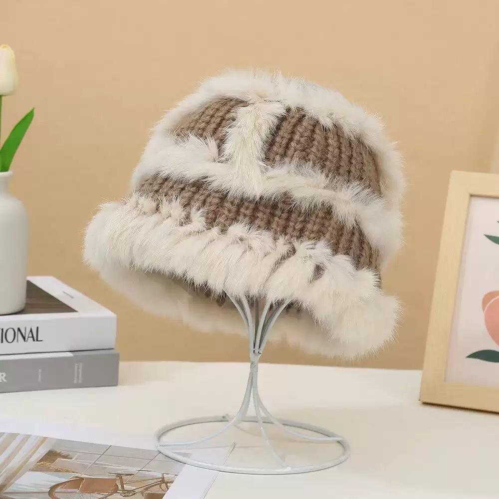 もこもこ 頭包み 顔 小さく見える ファー バケットハット 帽子 包み顔 ウサギ 毛 ニット 帽 レディース 保温 毛 帽子 防寒