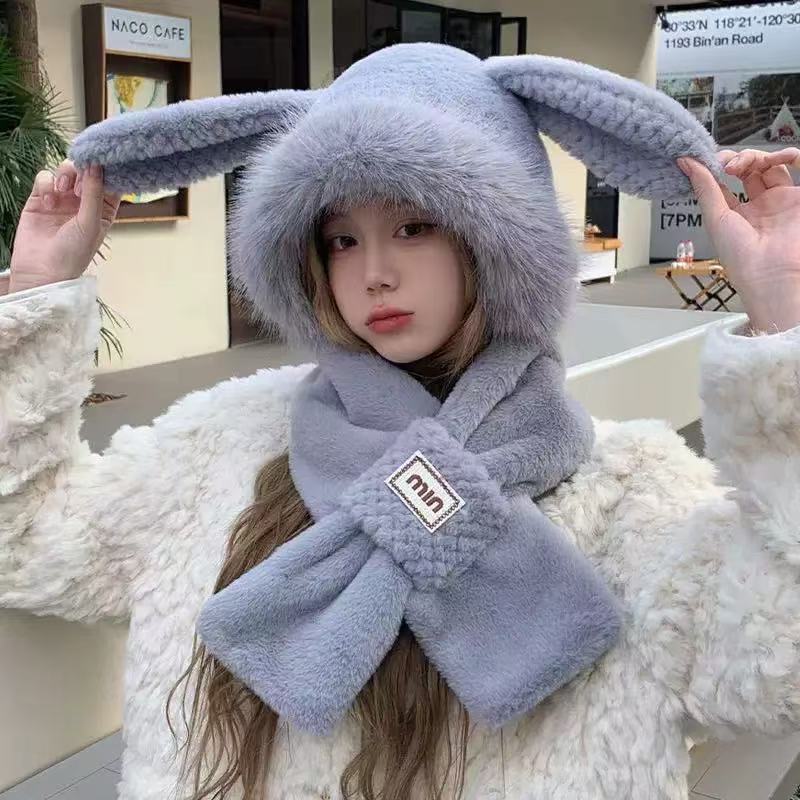 可愛い もこもこ 小うさぎ 帽子 マフラー 一体型 帽子 立体 うさぎ 耳 春夏 耳保護 マフラー 帽子