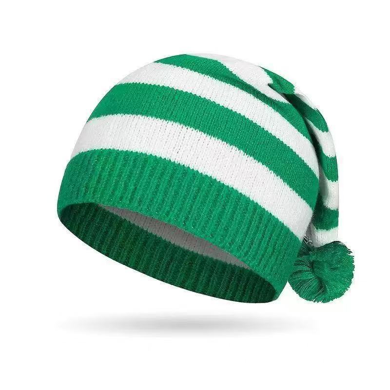 クリスマス 帽子 ニット帽 赤緑 ストライプ 毛球 ロング テール クリスマス 帽子 老人 帽子