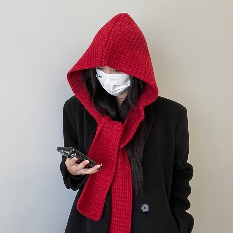 フード付き ケープ 帽子 マフラー 一体型 2点セット 無地 保温 両用 ニット マフラー ニット 帽子