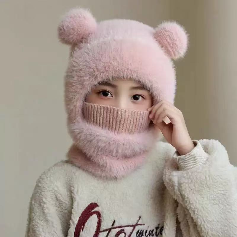 子供 毛糸 ニット 帽 男女児 マフラー 一体型 フード ベビー 防風 耳保護 保温 プルオーバー 帽子