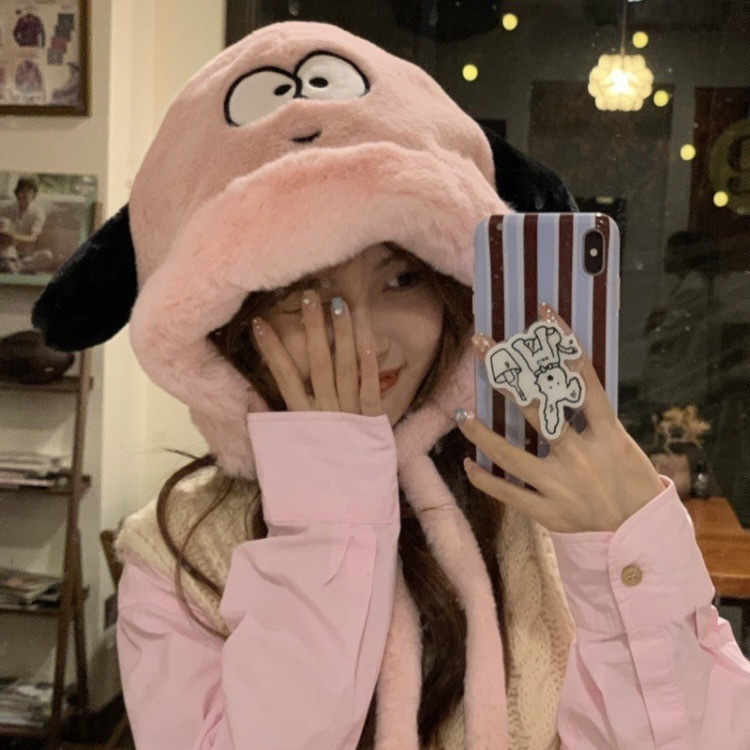 可愛い カートゥーン 子犬 もこもこ 帽子 レディース 保温 耳保護 防風 頭包み 帽子 厚手 帽