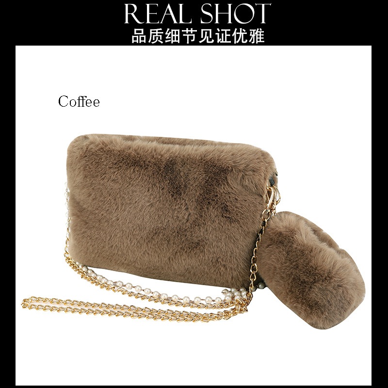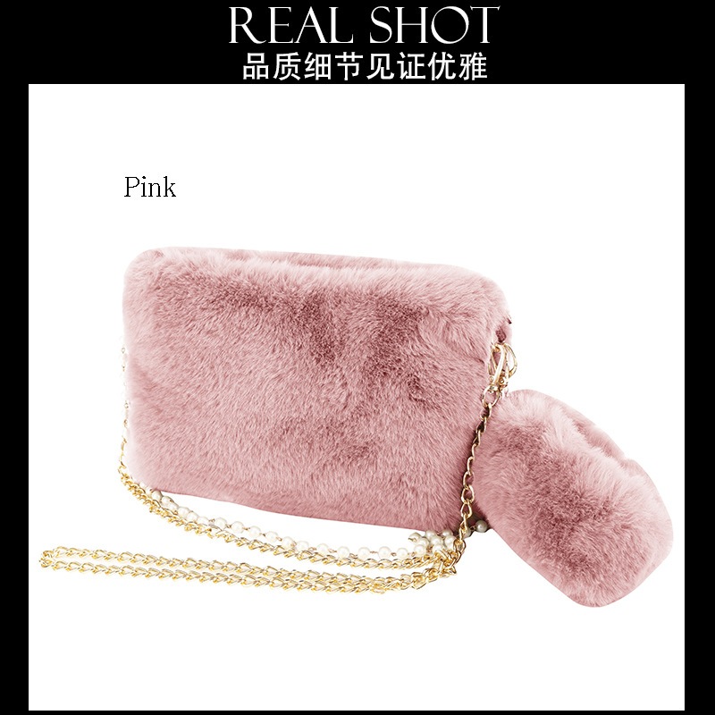 レディース ハンドバッグ フェイクファー パステルカラー ファスナー スクエア型