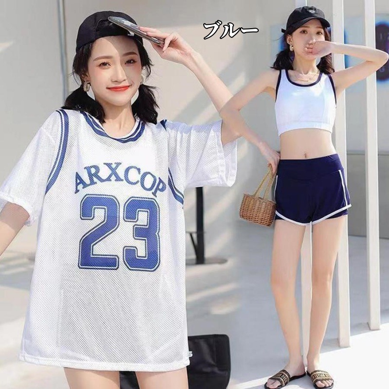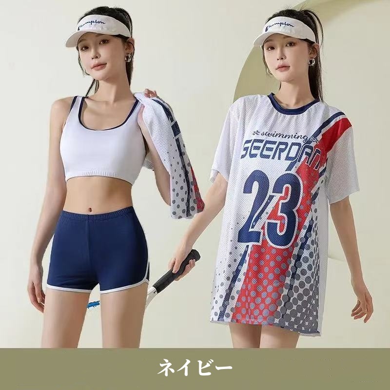 Miss Show【3点セット】 水着 レディース 体型カバー 3点セット ラッシュガード 韓国 高校生 中学生 プール スポーティー ママ 水着 ラッシュガード 韓国 女の子 海 かわいい