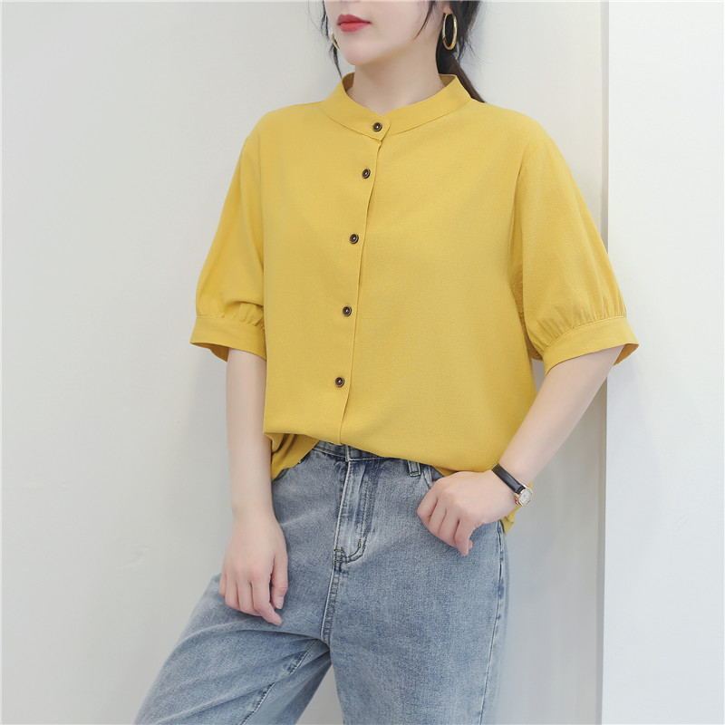 【今日限りでメガ割】長袖/半袖ゆったり無地ブラウス 綿麻シャツレディースパフスリーブレトロ文芸トップスゆったり着やせ中袖オーバーサイズシャツ
