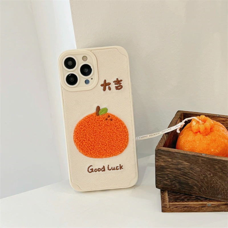 新年 毛糸の布 刺繍 みかん 大吉 iPhone14 13 12 11 スマホケース インスタで大注目の ストラップケース K220 iPhone 12 Pro Max