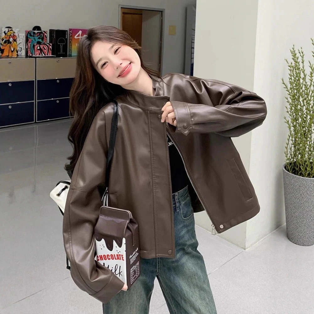 レザージャケット ジャケット アウター 韓国ファッション ミラードカーメル色 レディース 25 新モデル 感 ストリート風 小柄向け モータージャケット