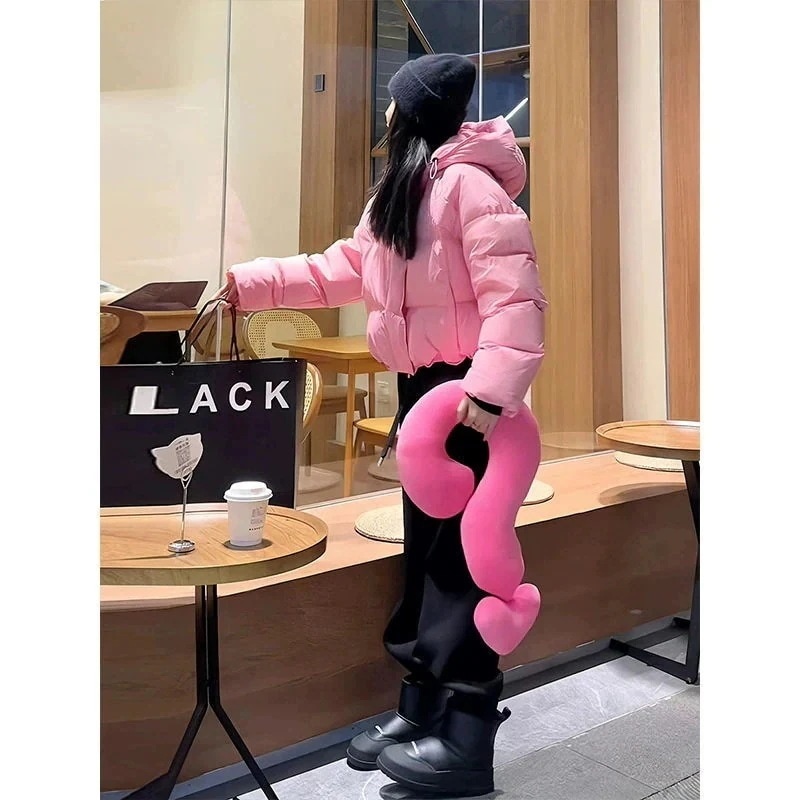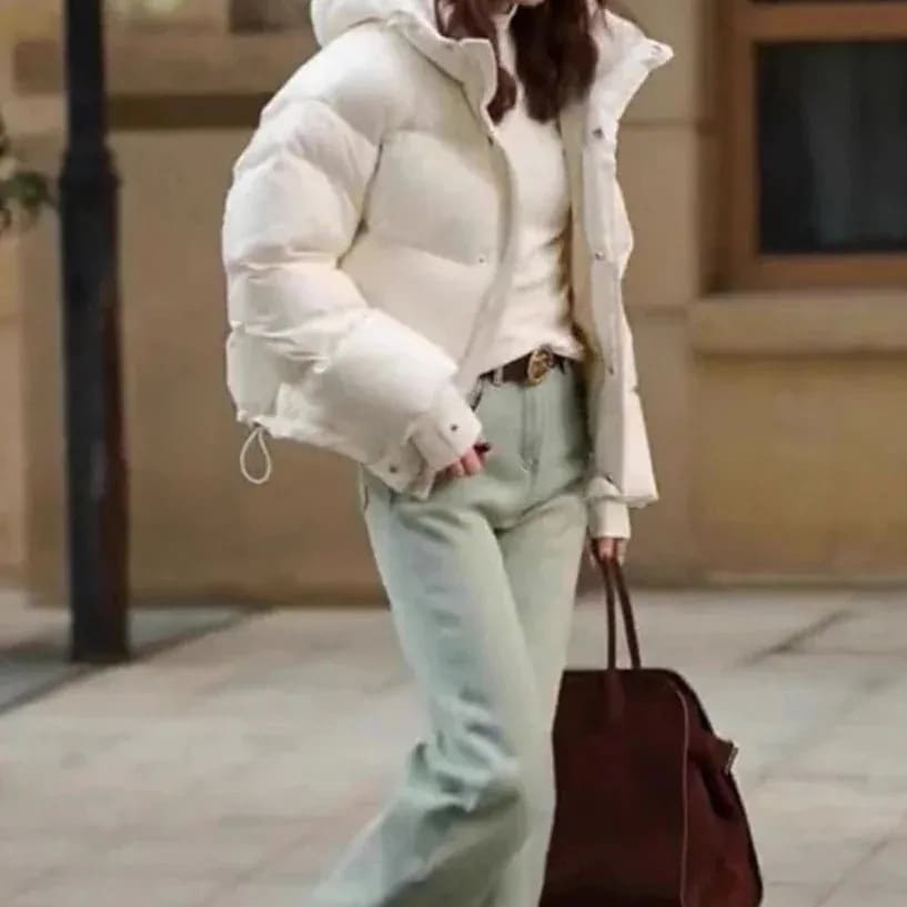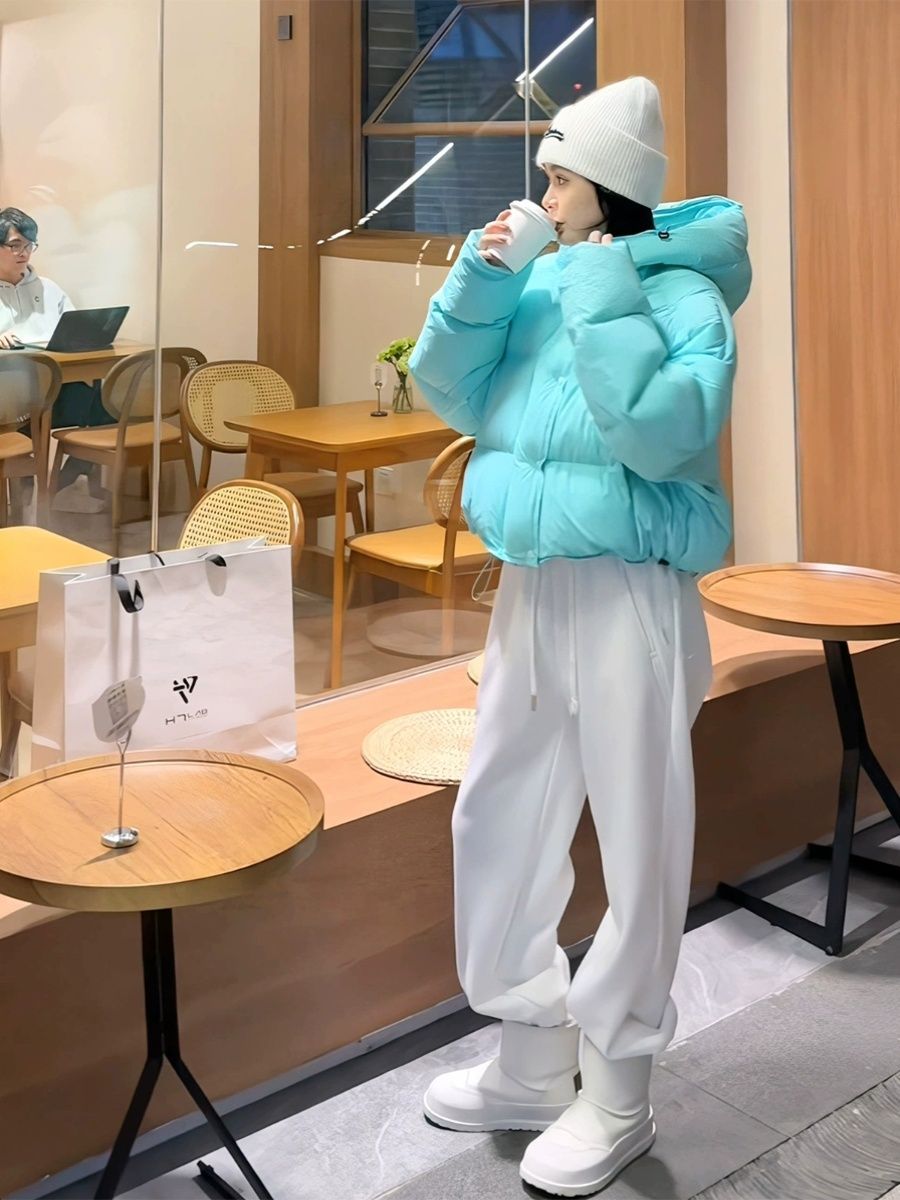 感あふれる超おしゃれなホワイトショート丈ダウンジャケット女性用ファッション防寒コートケンダルのパンケーキダウンコート厚手アウター