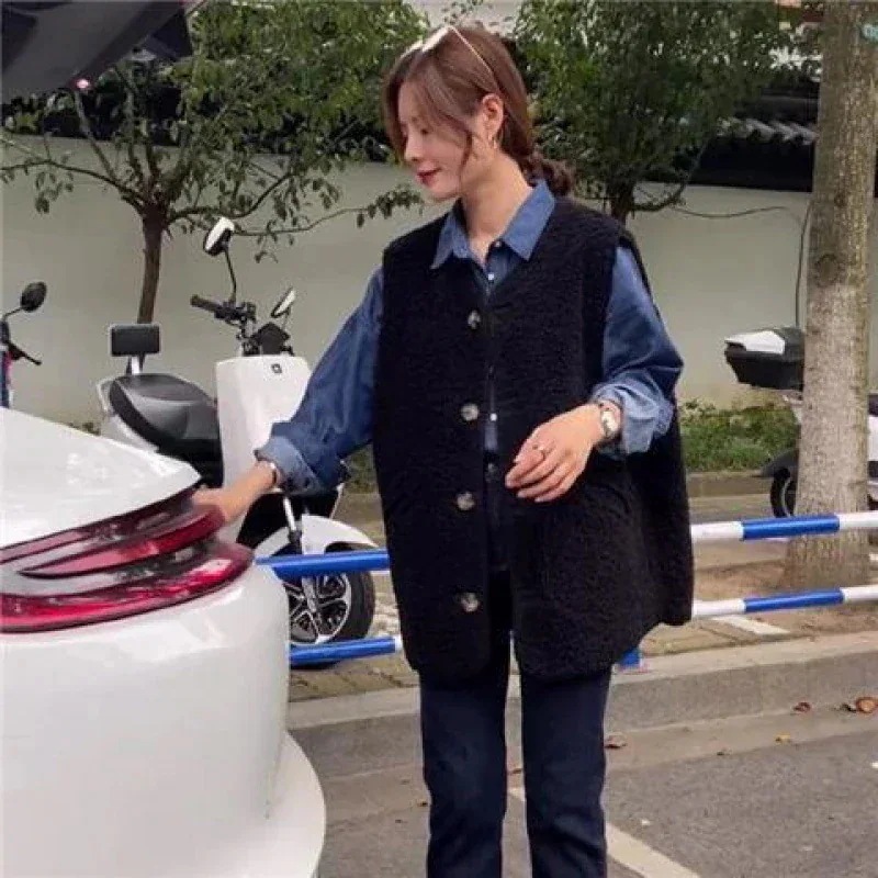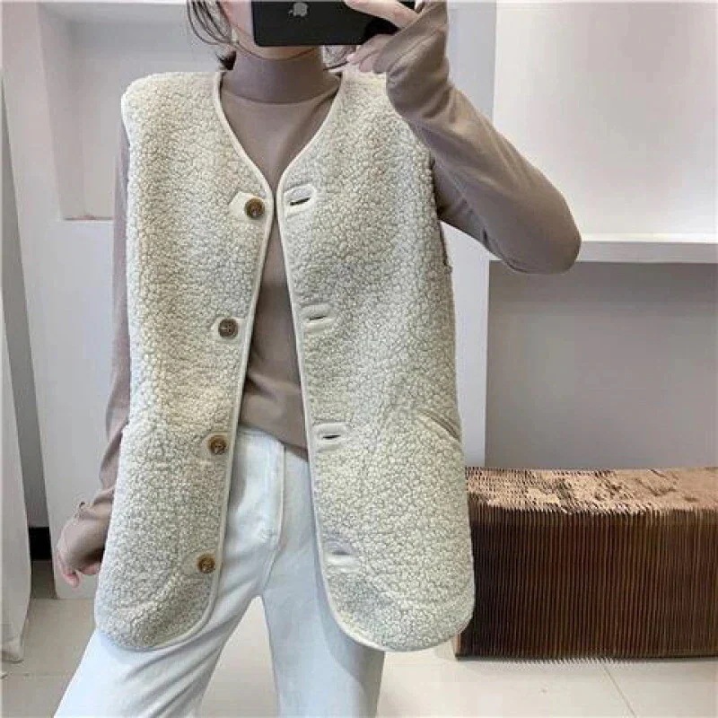 ベストコート 新作フェイクラムウールゆったりアウターノースリーブベスト