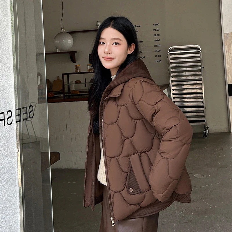 アウター 韓国風 の女性用 コットンコート フード付きジャケット ゆったり ショート丈 綿入れ