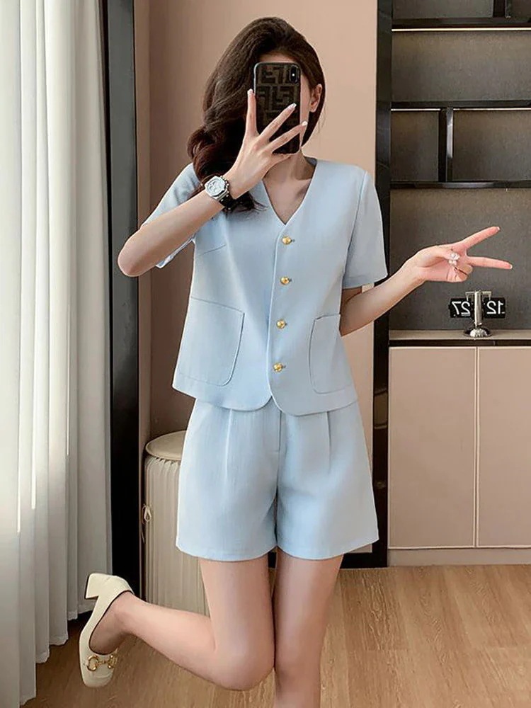 25 セットアップ 気質 スーツ 半袖 サマー 感 スーツアウターショートパンツ 2点セット レディース
