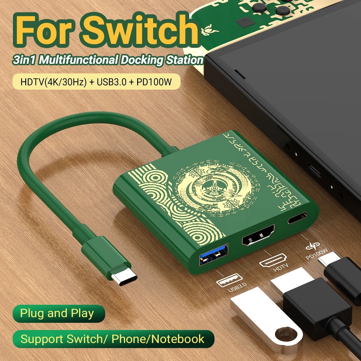 ポータブルゲームドッキングステーション TYPE-Cハブ HDMI&USB 3.0搭載 旅行やゲームに最適 輸入品