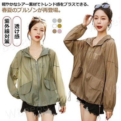 タイムセールフード付き 長袖 トップス 透け感 大きいサイズ UVカット シアーパーカー アウター ジャケット レディース 長袖 シアーブルゾン シースルー 透け ジップパーカー ライトアウター ゆっ