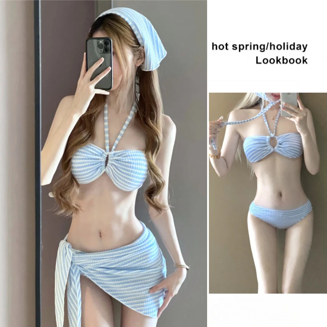 甘美な分体水着の新型ビキニの四点セットはスカートのセクシーな休暇の温泉のストライプが見えて痩せている水着の学生です