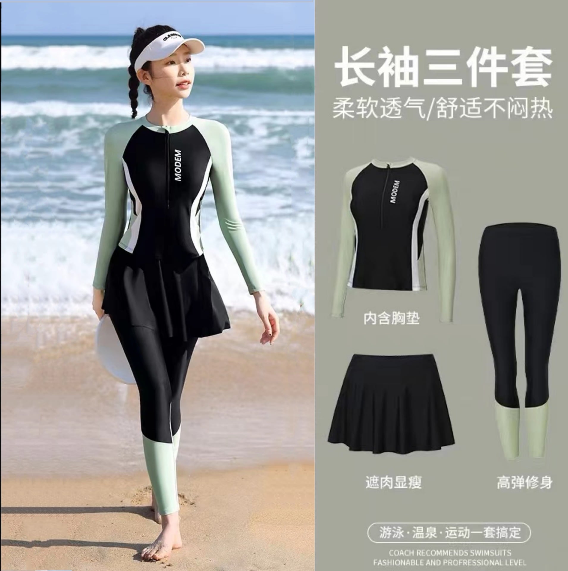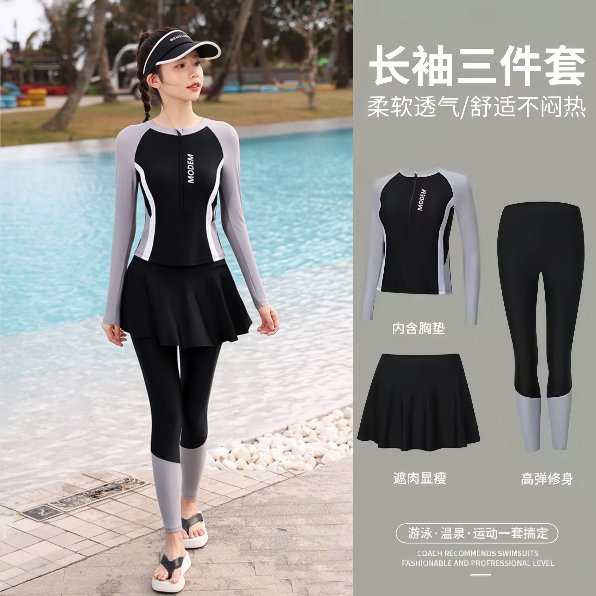 水着レディース2026新型水泳日焼け止め3点セット保守分体長袖長ズボンサーフィン浮潜クラゲ服