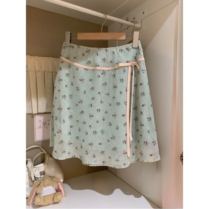 2026甘美新清新砕花半身スカート韓系痩せ蝶ネクタイスカートマスクa字スカート