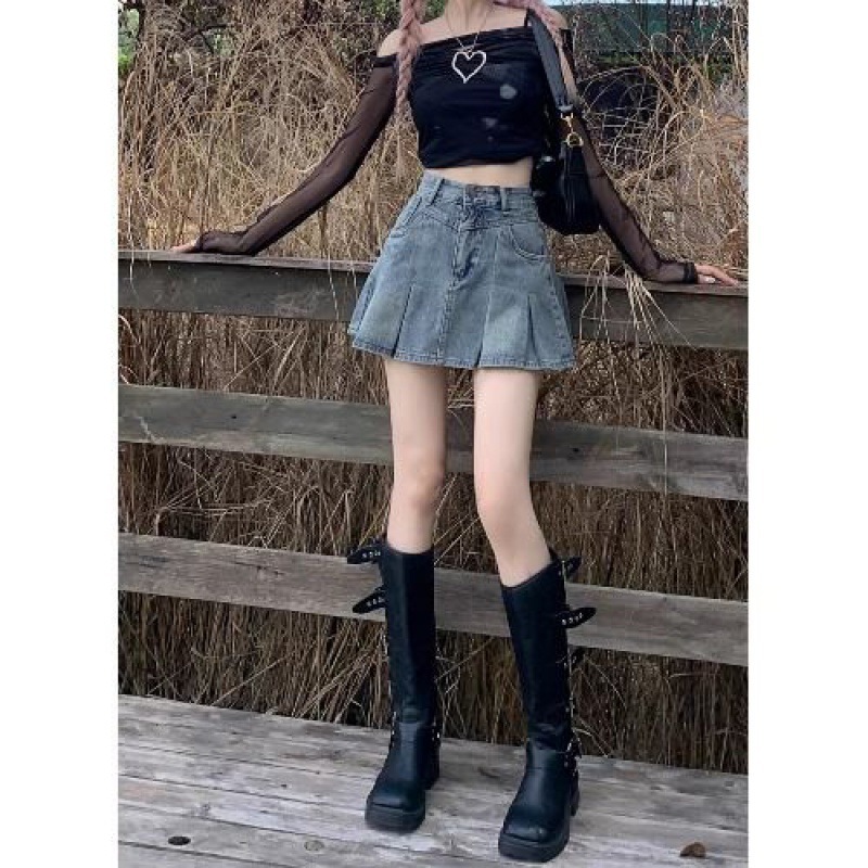 デニムのスカートの女性の韓国版はやせています2024年の新型春夏ハイウエストa字スカートの小柄なレトロなお尻のスカートです