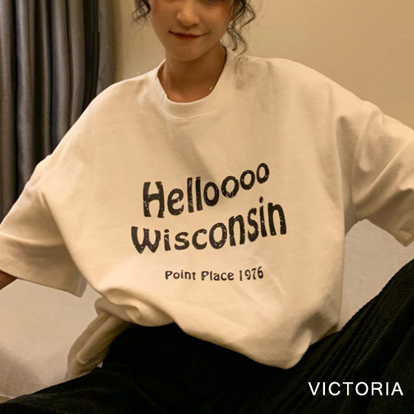 【限時割!引!】オーバーサイズ Tシャツ 体型カバーTシャツ ロゴプリント 半袖 オーバーサイズ