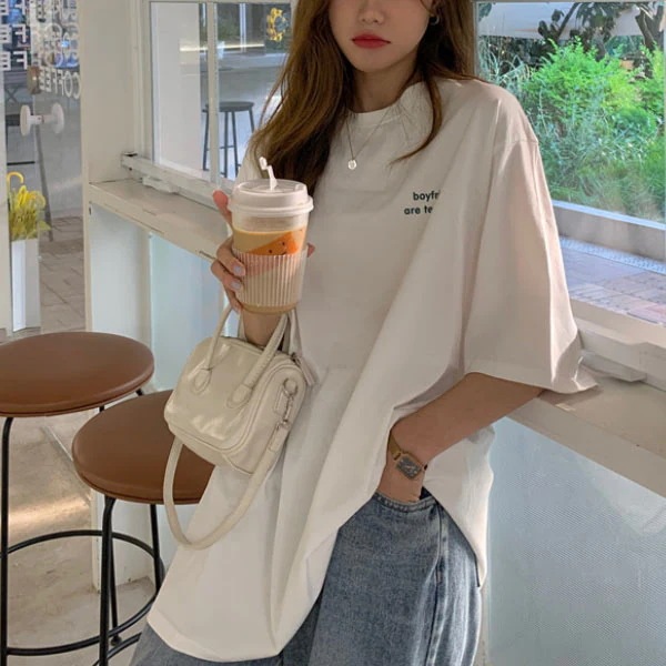 【限時割!引!】トップス Tシャツ 半袖 レディース 夏 韓国風ファッション ルーズ ラウンドネック ワンポイントロング丈 ゆったり Tシャツ