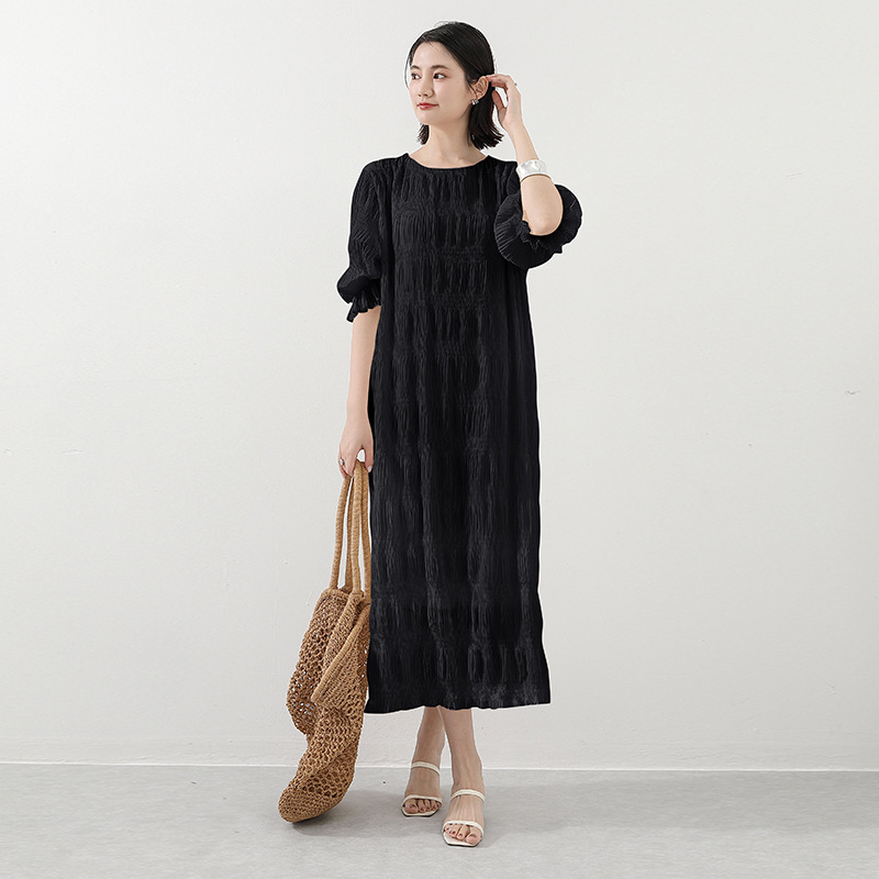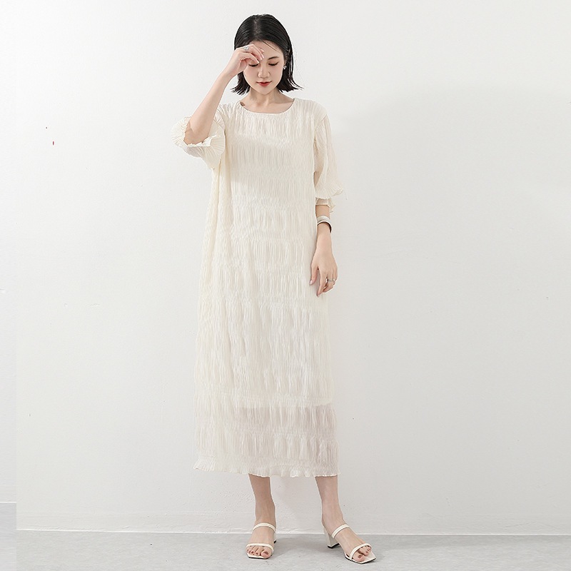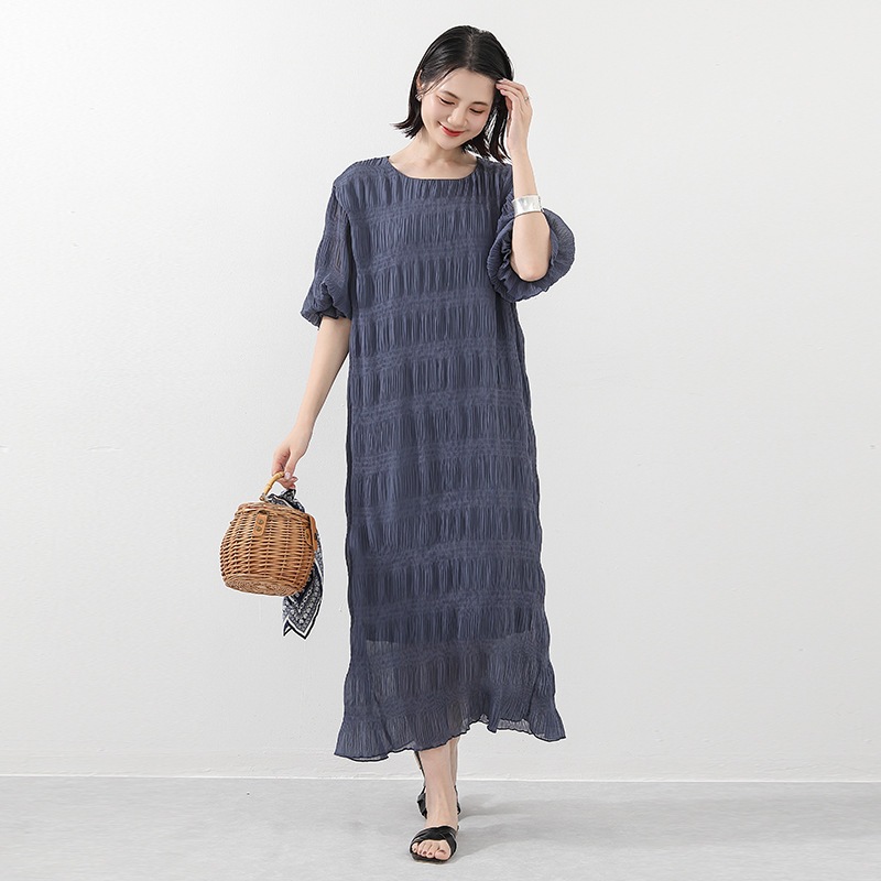 シフォン二重頭ワンピース春夏小さい大衆薄い金ゆったりしている外は丸首カジュアルな文芸ワンピースを着ます