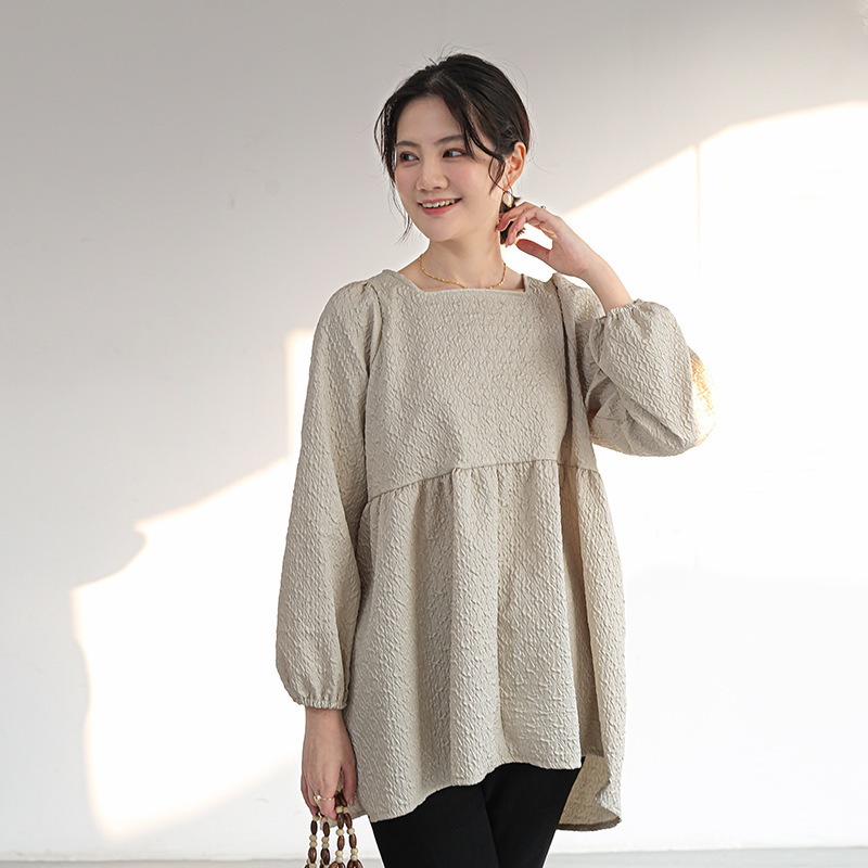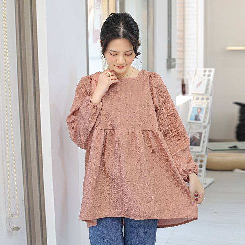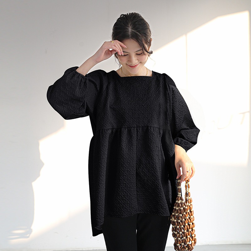 韓国9分袖ゆったりしたa版頭上着方襟エンボス人形泡袖時間はしわ女性を抑えます