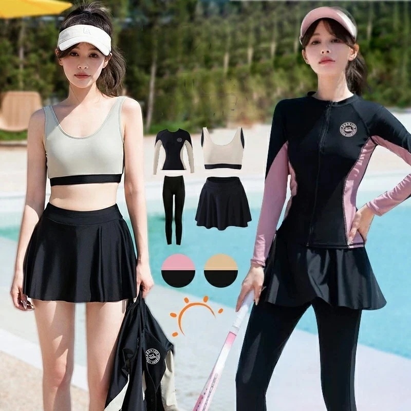 水着 体型カバー レディース ラッシュガード 4点セット UPF50+ UVカット ビキニ フィットネス セパレート タンキニ ショートパンツ スカート レギンス付き 大きいサイズ 可愛い 日焼け防