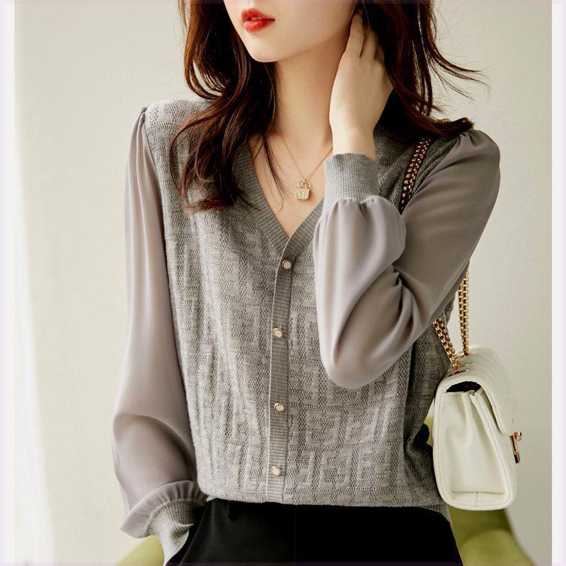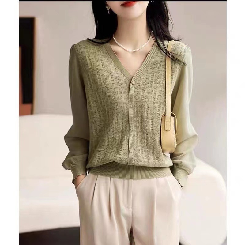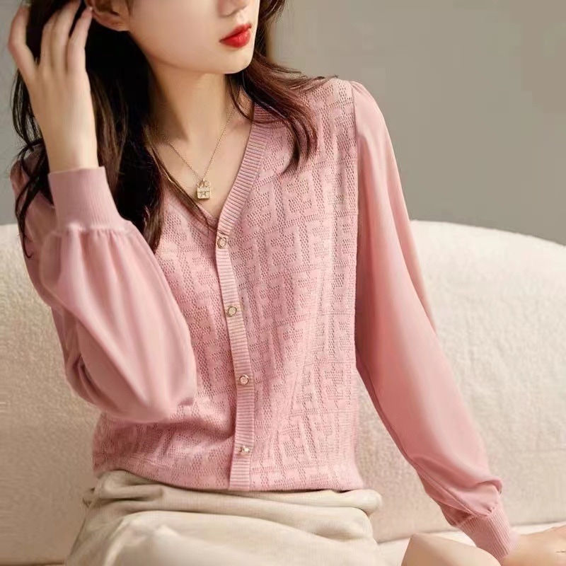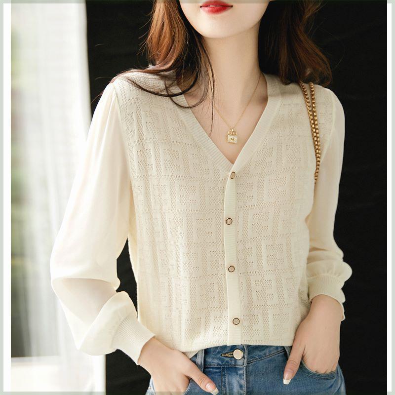 【2026人気新品入荷】春秋上品で優しい雰囲気の透かし彫りジャカードスリーブピンインVネックプルオーバーニット